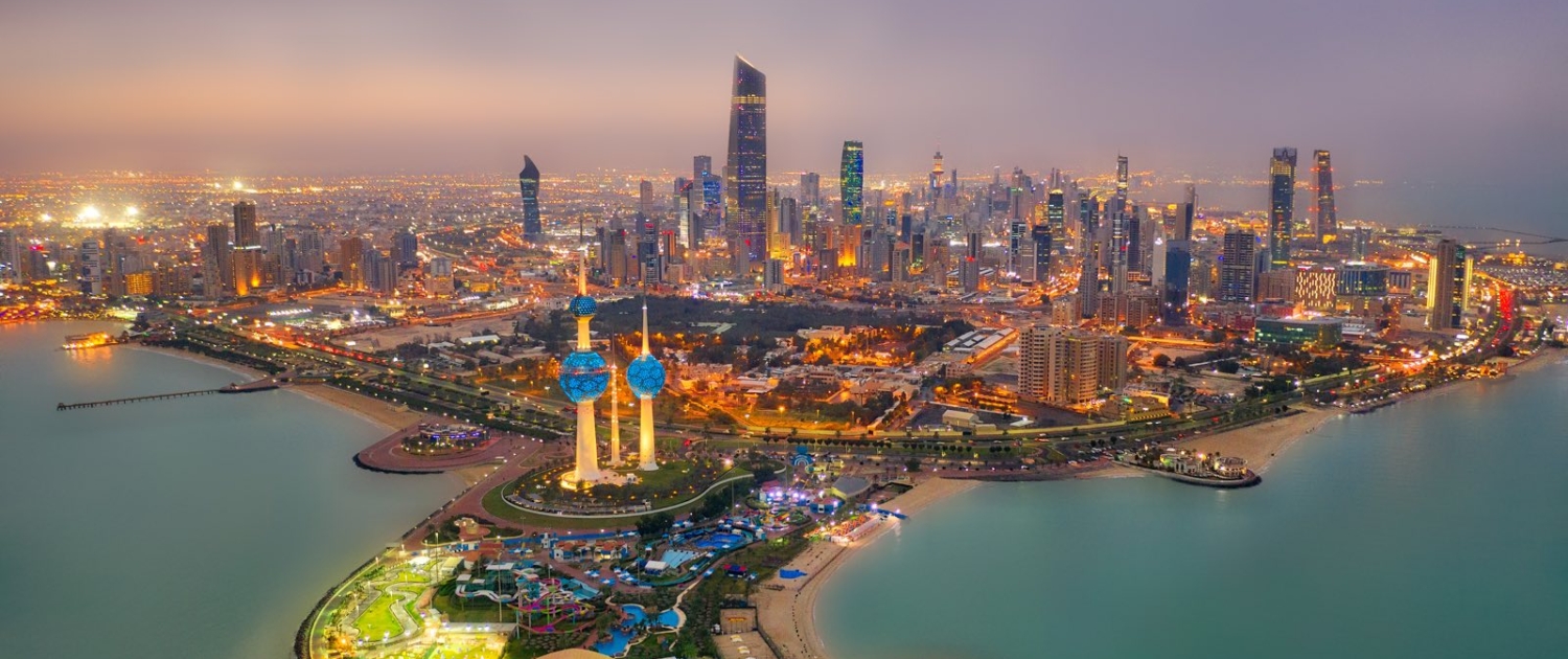 Afrejse fra København via Istanbul med ankomst til Kuwait City over midnat.